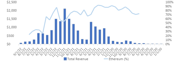 The Web2 market is growing 10% a year and is on pace to hit $218B by 2023, with an estimated $168B spent on in-game digital assets. Much of this commercial activity will eventually take place across the Ethereum ecosystem, where the vast majority of blockchain gaming activity already takes place.